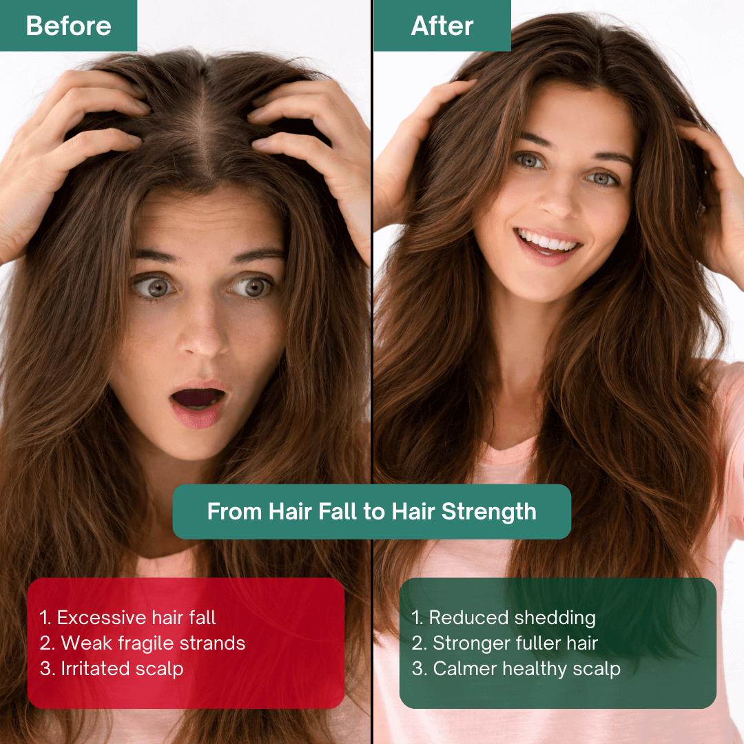 If your hair fall is related to stress, dryness, breakage, postpartum changes, weak scalp barrier or harsh water, our formulas can help improve the environment your hair grows in. They won’t replace medical treatment for advanced medical conditions, but they can reduce breakage, calm the scalp and improve overall density with consistent use.